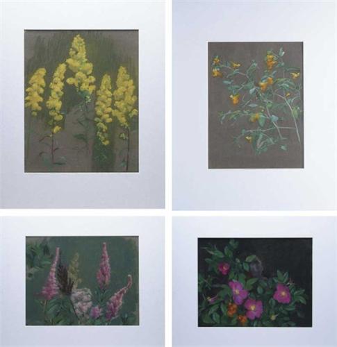 WILL ROWLAND DAVIS (American, 1879-1944) FOUR BOTANICAL PASTELS. Each housed in a modern white matte with foam board. Each of a different flower. Unsigned. PROVENANCE: Descended through the artist's family. SIGHT SIZE: Vary but approximately 13" x 11". CONDITION: Very good. 9-26614