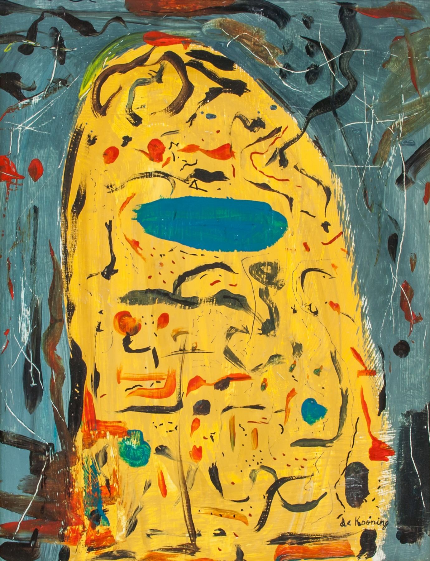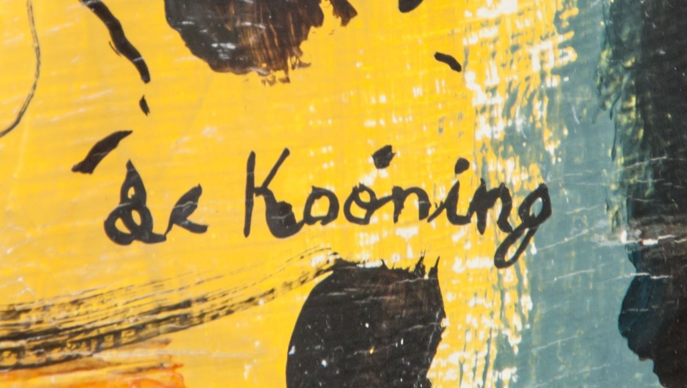 Oil on canvas, framed. Featuring an abstract figure. Signed and attr. Willem de Kooning (Dutch, 1904-1997) on the lower right corner. 48.5 x 38 cm (19.1 x 15 in.) A first-generation Abstract Expressionist, Willem de Kooning is one of the most important artists of the 20th century. In 1950s New York, when painters like Jackson Pollock and Franz Kline were moving away from representational imagery toward pure abstraction, de Kooning maintained a commitment to the figurative tradition, developing a signature style that fused vivid color and aggressive paint handling with deconstructed images of the female form - a then-controversial body of works that has become known as his “Women” paintings. PROVENANCE: Southern Ontario estate