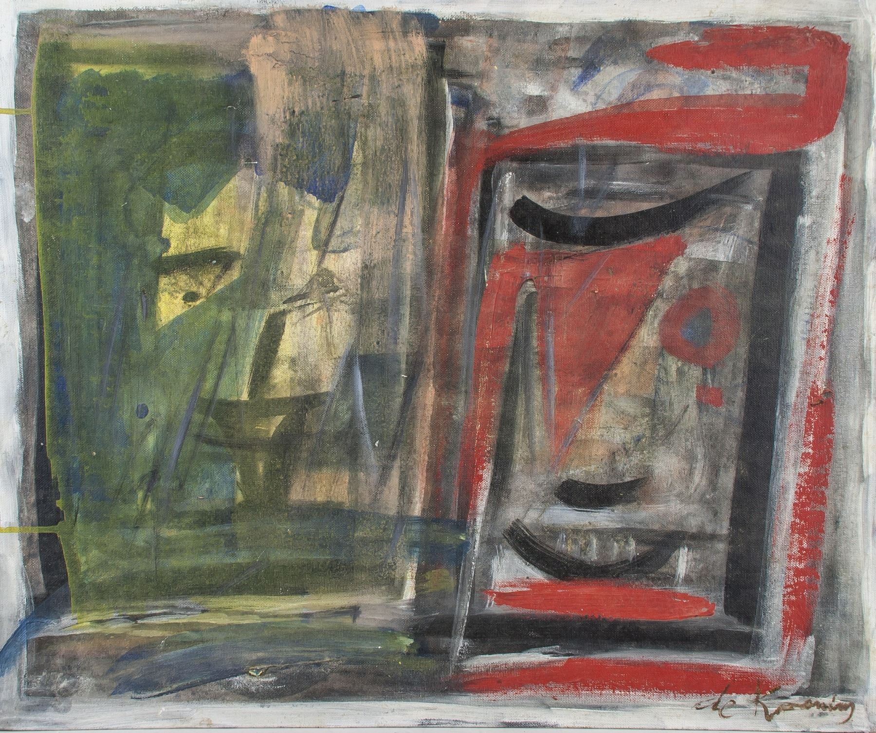 Oil on board. Featuring an abstract composition. Signed and attr. Willem de Kooning (Dutch, 1904-1997), on the lower right corner. 51 x 60.5 cm (20 x 24 inch). A first-generation Abstract Expressionist, Willem de Kooning is one of the most important artists of the 20th century. In 1950s New York, when painters like Jackson Pollock and Franz Kline were moving away from representational imagery toward pure abstraction, de Kooning maintained a commitment to the figurative tradition, developing a signature style that fused vivid color and aggressive paint handling with deconstructed images of the female form - a then-controversial body of works that has become known as his “Women” paintings. PROVENANCE: Private collection (Evia Island, Greece)