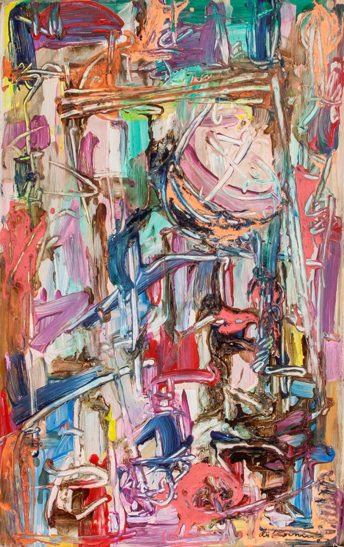 Oil on canvas. Featuring an abstract composition. Signed and attr. Willem de Kooning (American, 1904-1997) on the lower right corner. 53 x 33 cm (20.9 x 13.0 in.) A first-generation Abstract Expressionist, Willem de Kooning is one of the most important artists of the 20th century. In 1950s New York, when painters like Jackson Pollock and Franz Kline were moving away from representational imagery toward pure abstraction, de Kooning maintained a commitment to the figurative tradition, developing a signature style that fused vivid color and aggressive paint handling with deconstructed images of the female form - a then-controversial body of works that has become known as his “Women” paintings. PROVENANCE: Private collection (Toronto, ON)