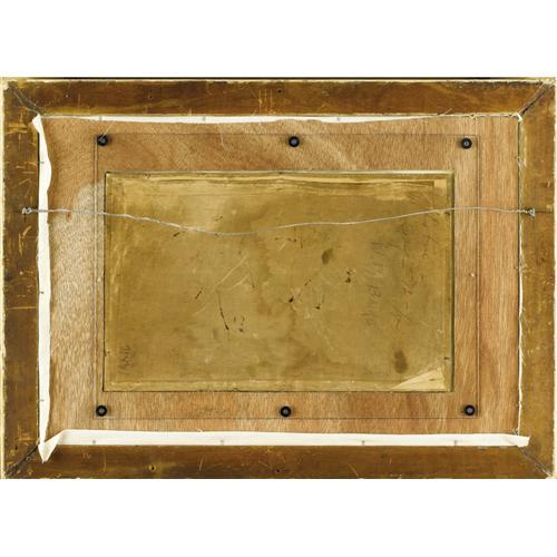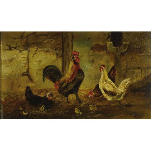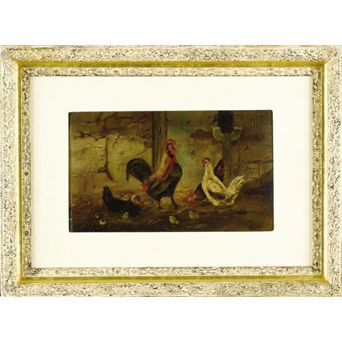 <B>WILLIAM BAPTISTE BAIRD</B></I> (American 1847-1899)<BR><I>Untitled (Rooster and Hen)</B></I><BR>Oil on canvas laid on board<BR>9-1/4 x 15-1/2 inches (23.5 x 34.9 cm)<BR>Signed verso: <I>W.B. Baird</B></I><BR><BR><BR><BR><b>Shipping:</b> Requires 3rd Party Shipping (<a target="_blank" href="http://www.heritageauctions.com/common/shipping.php">view shipping information</a>)