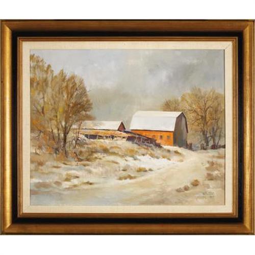 <B>WILLIAM CURTIS ELLIOTT (1909-2001)</B></I><BR><I>Texas Farm</B></I><BR>Oil on canvas<BR>24 x 30 inches (61.0 x 76.2 cm)<BR>Signed lower right<BR><BR> <BR><BR><b>Shipping:</b> Requires 3rd Party Shipping (<a target="_blank" href="http://www.heritageauctions.com/common/shipping.php">view shipping information</a>)