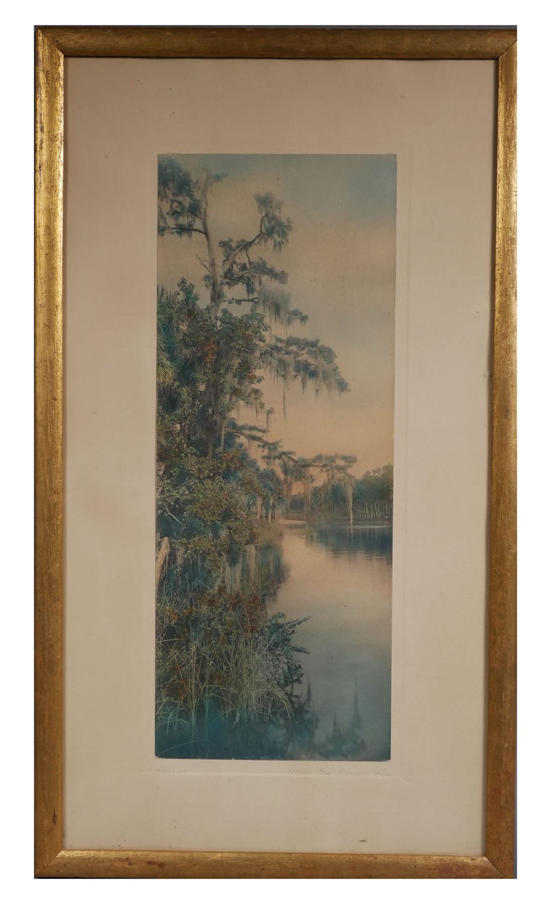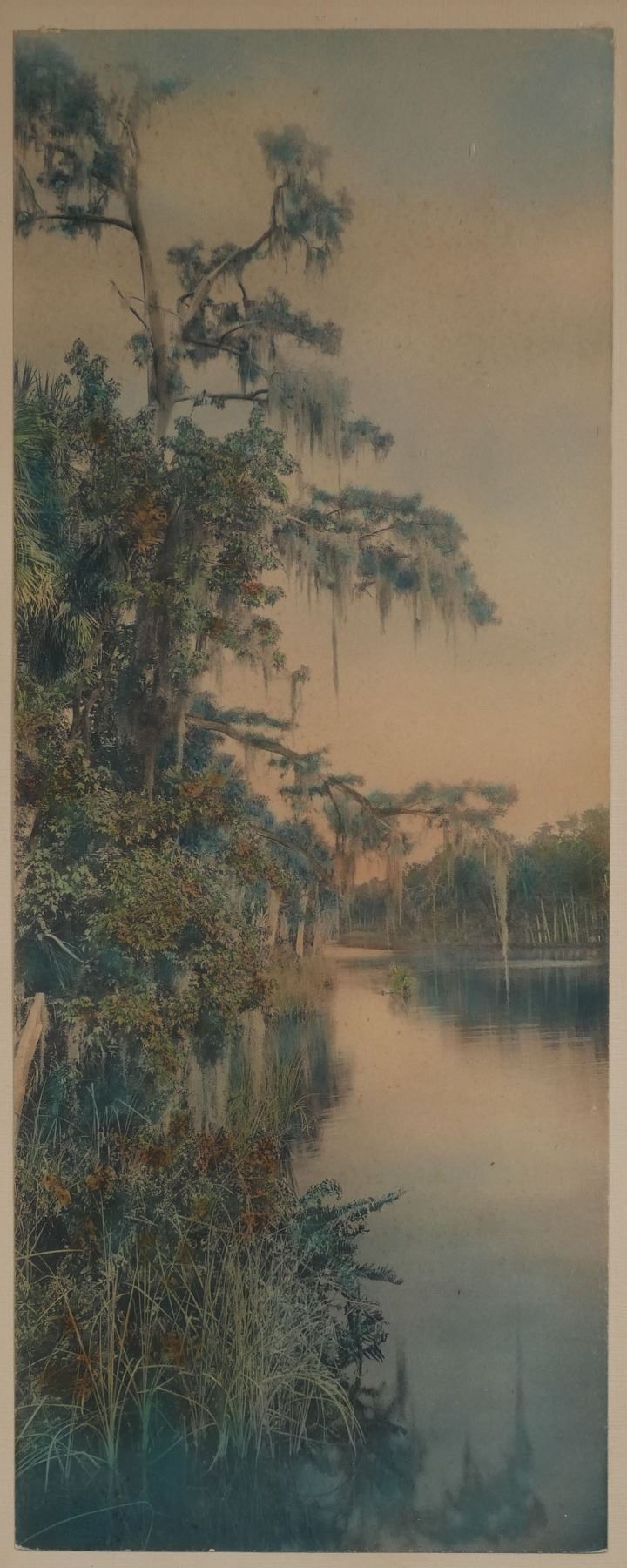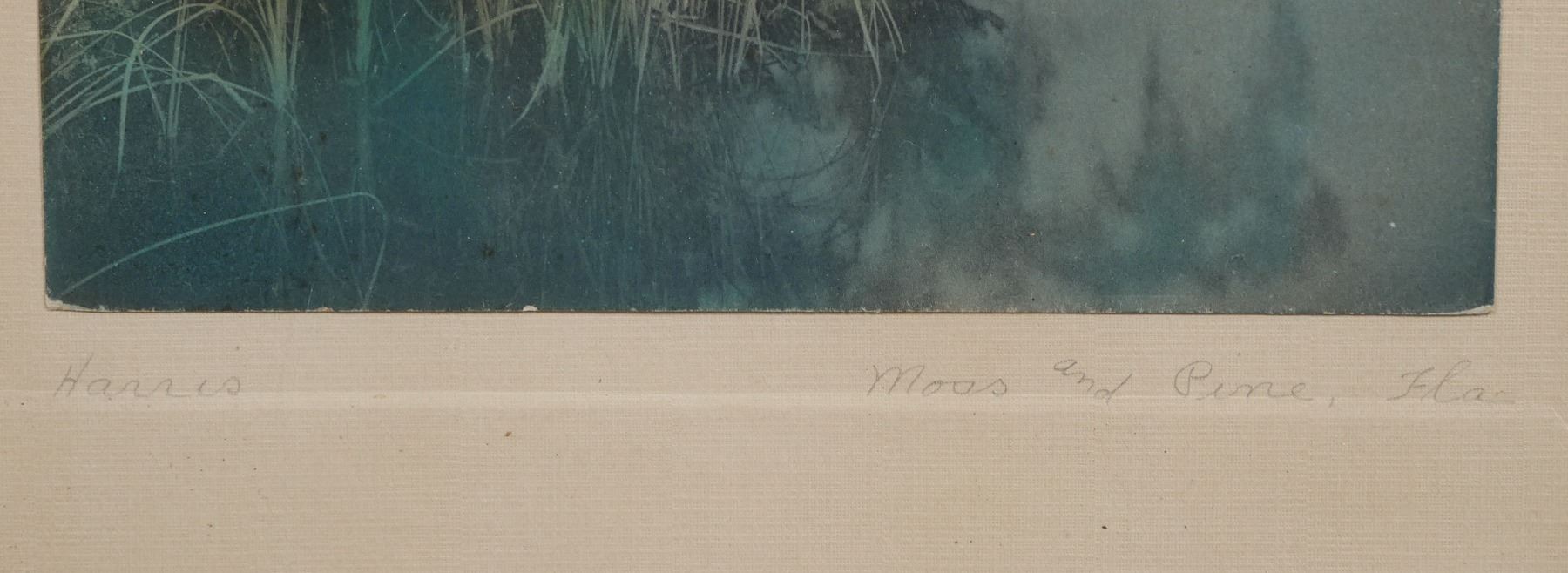 Hand colored photograph of "Moss and Pine, Florida" by William Harris. Signed and titled on the mount. Photograph measures 6 1/2" x 16 1/4", framed to approximately 11 1/2" x 21 1/4". Excellent condition.