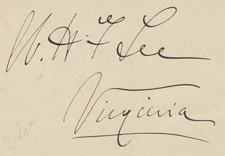 (1837 - 1891) Confederate major general of cavalry and son of R.E. Lee who fought at Chancellorsville, Fredericksburg, and surrendered at Appomattox. Huge, bold signature on a 7" x 5" album page: "W. H. F. Lee Virginia". Light pencil note at left, else fine.