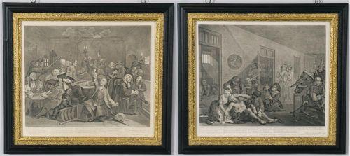 WILLIAM HOGARTH ENGRAVINGS each 12 1/4"x15 1/8" plate with pristine signed Perry Hopf frames, CONDITION: excellent, but margins possibly trimmed, excellent signed custom frames, PACKING AND SHIPPING BY FAIRFIELD AUCTION WITHIN CONTINENTAL USA (excluding insurance) $50,