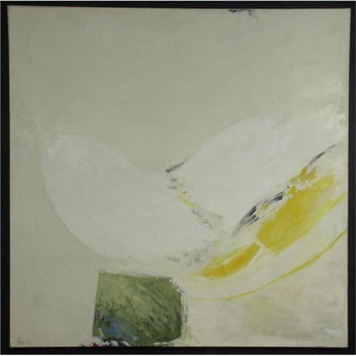 OIL PAINTING: William Ivey (1919 - ) Titled: ''On Wings'', Signed on reverse and the lower left front dated 1970, Oil on Canvas depicting an abstract image, 60'' x 60'' no frame.