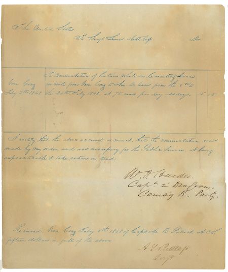 (1815 - 1873) Confederate lieutenant general who led his corps at Shiloh and Atlanta, and attempted to halt Sherman's March to the Sea. Scarce pre-war D.S. "W. J. Hardee Capt. 2'nd Dragoons Comd'g R. Party", 1p. 4to., Vera Cruz, Feb. 5, 1848, a commutation of rations with payment of $15.00 attendant. Some toning, overall very good.