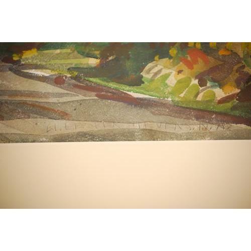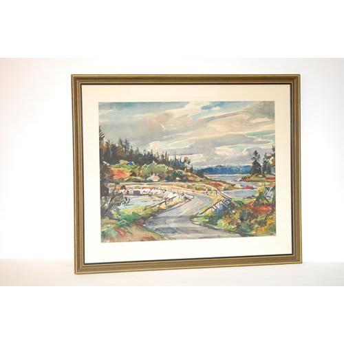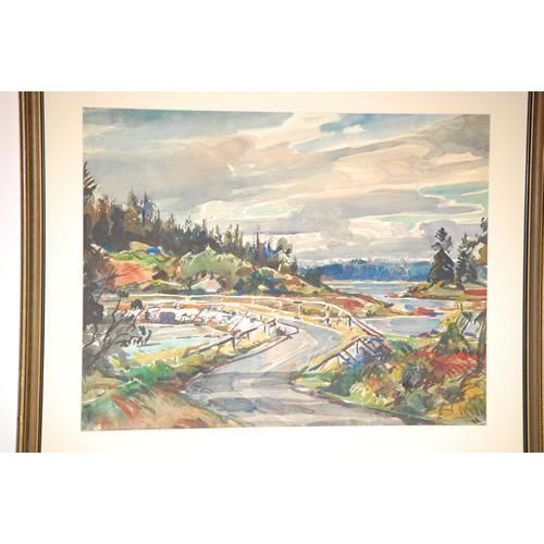 WILLIAM LESTER STEVENS WATERCOLOR OF ROAD BRIDGE OVER A STREAM IN THE WOODS IN MAINE-SIGNED W. LESTER STEVENS N.A. ON LOWER RIGHT, MATTED & FRAMED (20 1/4" X 26 1/2") - LIGHT TONING, IMPERFECTIONS