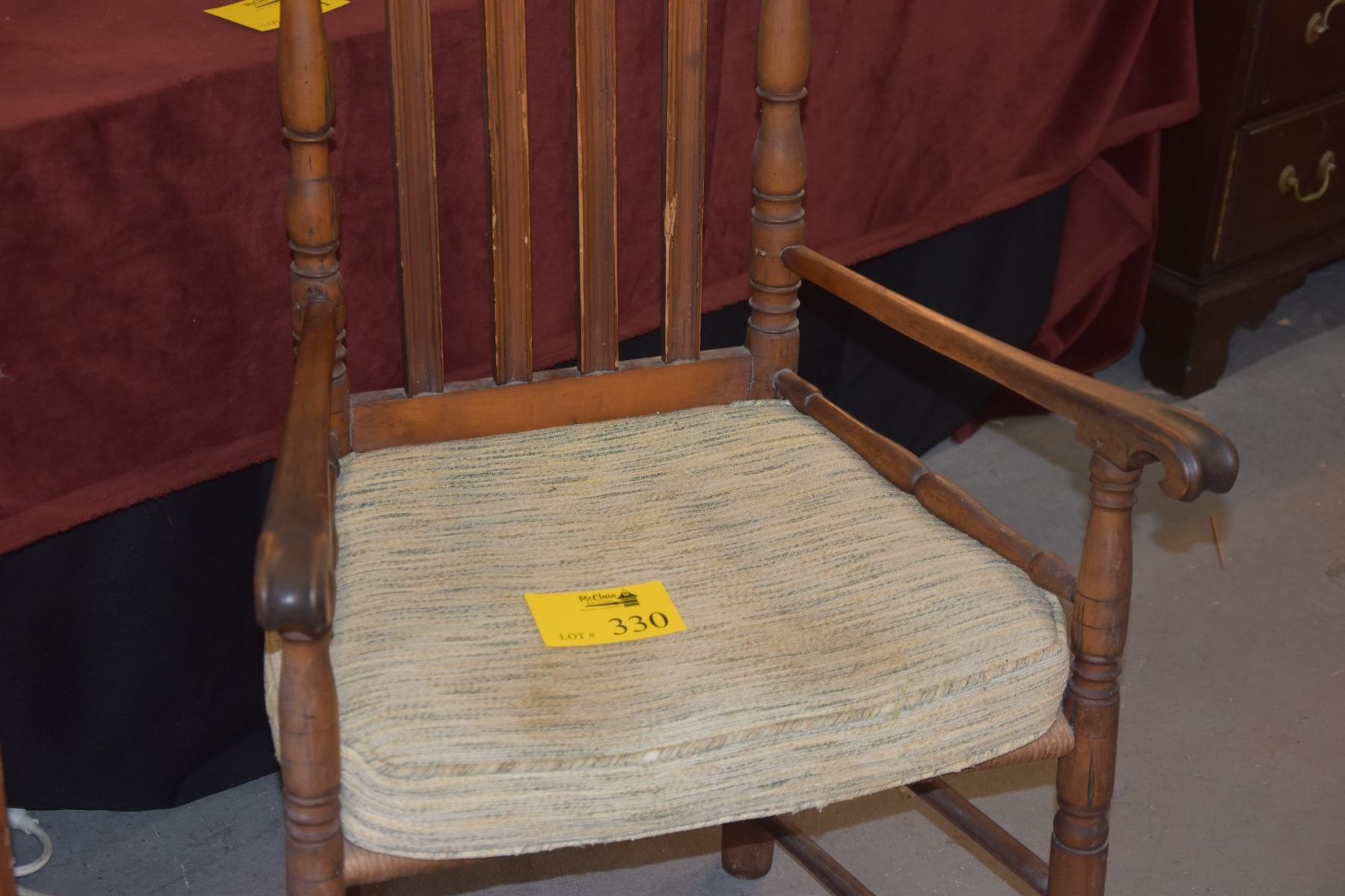 WILLIAM & MARY BANNISTER BACK RUSH SEAT ARMCHAIR, MID 18TH CENTURY