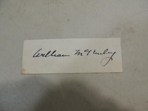 WILLIAM MCKINLEY CUT SIGNATURE AUTOGRAPH NO COA. AS SHOWN. VIEW PICTURE FOR DETAIL. PLEASE BE ADVISED, AND INFORMED REGARDING SIGNATURES OR AUTOGRAPHS THAT WE SELL AT AUCTION: WE ARE NOT AUTHENTICATORS, AND WE DO NOT AUTHENTICATE, OR VALIDATE ANY AUTOGRAPHS OR SIGNATURES THAT WE OFFER AT AUCTION. SOME AUTOGRAPHS OR SIGNATURES MAY COME WITH AN AUTHENTICATION FROM ANY ONE OF LITERALLY HUNDREDS OF AUTHENTICATORS ACROSS THE COUNTRY, AND AROUND THE WORLD. WE DO NOT ENDORSE ANY AUTHENTICATOR, NOR DO WE GUARANTEE THAT ANY AUTOGRAPH OR SIGNATURE IS AUTHENTIC, OR THAT IT WILL PASS AUTHENTICATION BY ANY AUTHENTICATOR. ALL AUTOGRAPHS OR SIGNATURES ARE SOLD