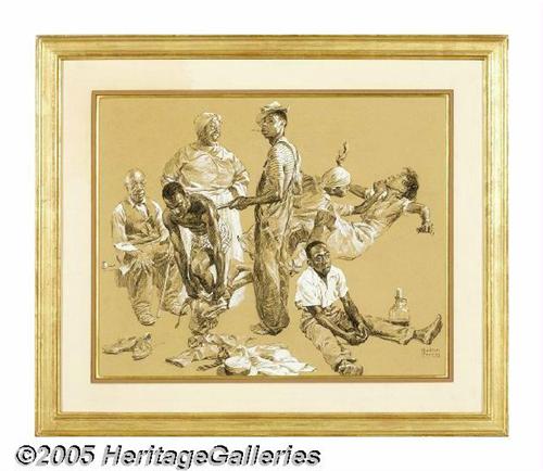 <B>WILLIAM MEADE PRINCE (American 1893-1951)</B></I> <BR>Original Magazine Story Illustration, c.1940 <BR>Collier's <BR>Pencil and white gouache on toned paper <BR>16.75in. x 20.5in.<BR>Signed lower right <BR>Provenance: Morris Weiss collection <BR><BR>Condition Report: Overall excellent condition<BR>