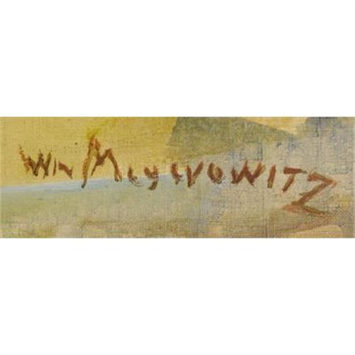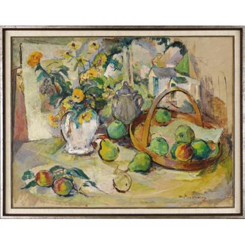 <B>WILLIAM MEYEROWITZ </B></I>(American 1887-1981)<BR><I>Still Life Window</B></I><BR>Oil on canvas<BR>27 x 35 inches (68.6 x 88.9 cm)<BR>Signed lower right:<I> Wm Meyerowitz</B></I><BR>Inscribed on verso: <I>Still-Life Window by William Meyerowitz</B></I><BR> <B>Condition Report:</B> Normal wear commensurate with age, minor craquelure and scattered paint loss to the left side of the composition<BR><BR><b>Shipping:</b> Requires 3rd Party Shipping (<a target="_blank" href="http://www.heritageauctions.com/common/shipping.php">view shipping information</a>)