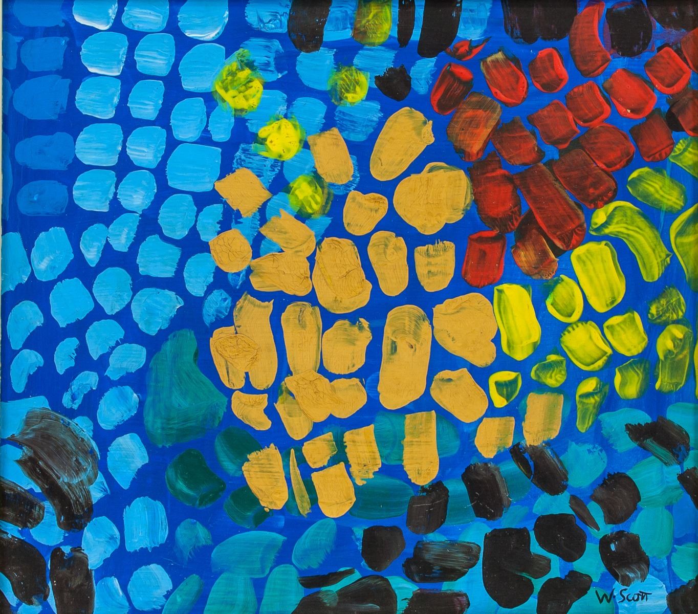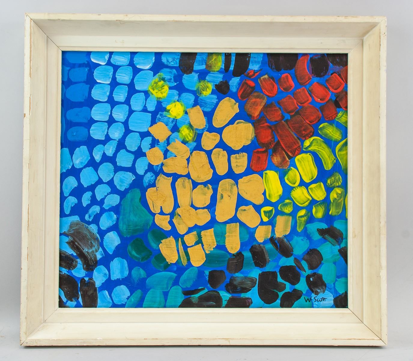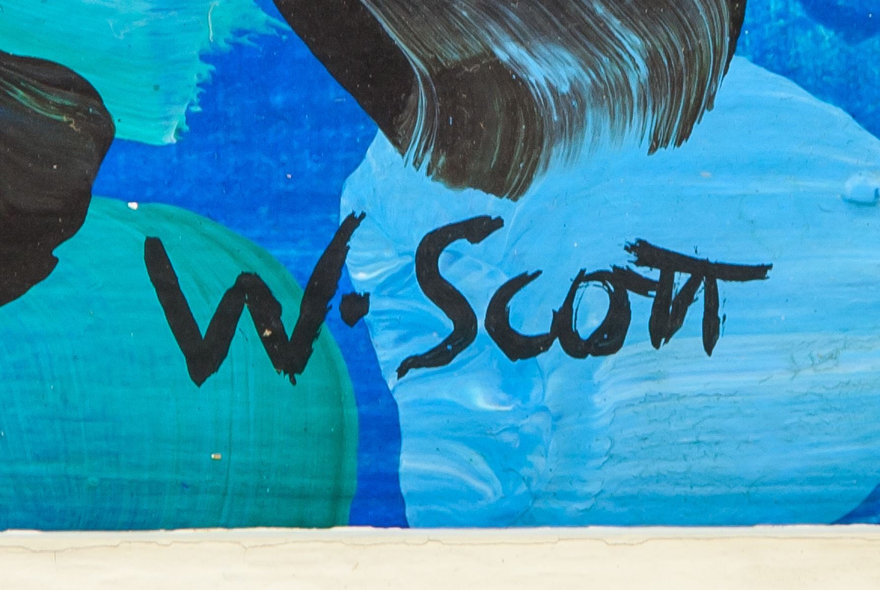 Oil on canvas, framed. Featuring an abstract expressionist composition. Signed and attr. William Scott (British, 1913-1989) on the lower right corner. 39 x 44 cm (framed 49 x 54 cm) (15.3 x 17.3 in). William Scott was a Scottish-born British still-life painter who was influenced by the work of both Georges Braque and Paul Klee. Characterized by flat areas of color and descriptive lines, his paintings explored the various forms found in daily life. About his work, Scott said, “I am an abstract artist in the sense that I abstract. I cannot be called non-figurative while I am still interested in the modern magic of space, primitive sex forms, the sensual and the erotic, disconcerting contours, the things of life.” Born on February 15, 1913 in Greenock, United Kingdom, his family moved to his father’s hometown of Enniskillen in Northern Ireland when Scott was 11 years old. The artist went on to study first at the Belfast School of Art before finishing his education at the Royal Academy of Art in London. In 1937, he founded an art school in Pont-Aven, France with his friend the painter Geoffrey Nelson. Considered one of the 20th century’s best-known painters from Ulster, he represented Britain at the Venice Biennale in 1958. Retrospectives of his work have been held at both the Tate Gallery in London and the Irish Museum of Modern Art in Dublin. Scott died on December 28, 1989 in Somerset, United Kingdom. His works are held in the collections of the Hirshhorn Museum and Sculpture Garden in Washington, D.C., the Solomon R. Guggenheim Museum in New York, and the Art Institute of Chicago. PROVENANCE: Southern Ontario estate