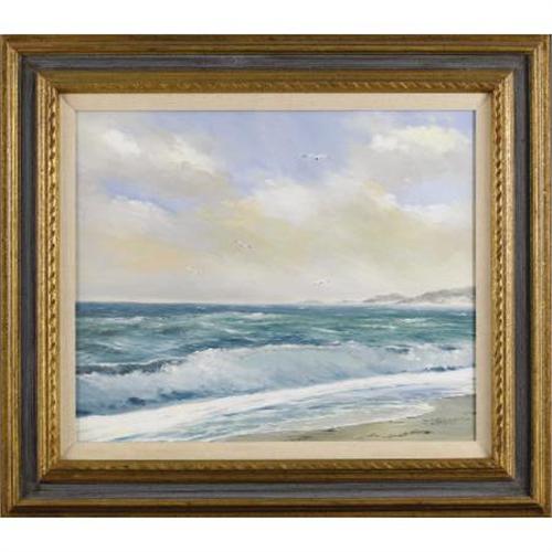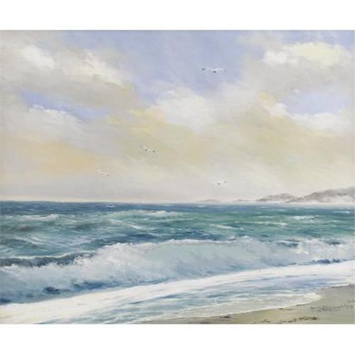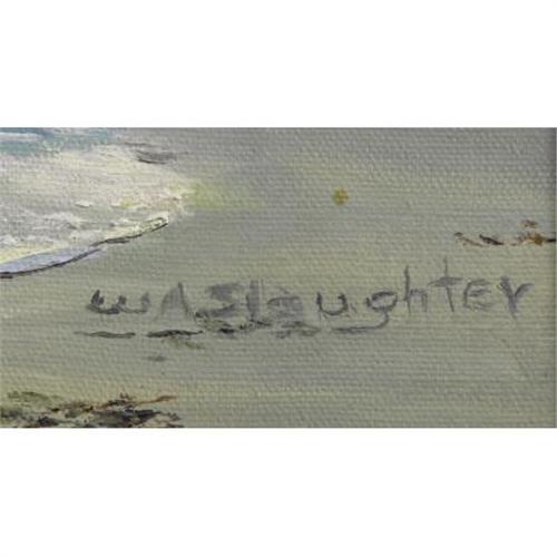 <B>WILLIAM SLAUGHTER (1923-2003)</B></I><BR>Untitled Seascape<BR>Oil on canvas<BR>20 x 24 inches (50.8 x 61.0 cm)<BR>Signed lower right<BR><BR> A well painted coastal scene.<B>Condition Report:</B> Excellent condition. Period frame in excellent condition.<BR><BR><b>Shipping:</b> Requires 3rd Party Shipping (<a target="_blank" href="http://www.heritageauctions.com/common/shipping.php">view shipping information</a>)