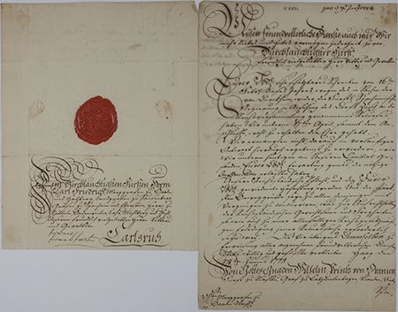 (1748 - 1806) Stadholder of the Netherlands dominated by his spouse Wilhelmina of Prussia, his rule was weakened by ill-advised alliances resulting in revolution. Manuscript D.S. W. Pr. v. Orange", 2pp. legal folio, June 14, 1778, untranslated but apparently the promotion of an officer in the Dutch navy. Docketed integral leaf trimmed at bottom and not affecting the promotion document itself which is very good.
