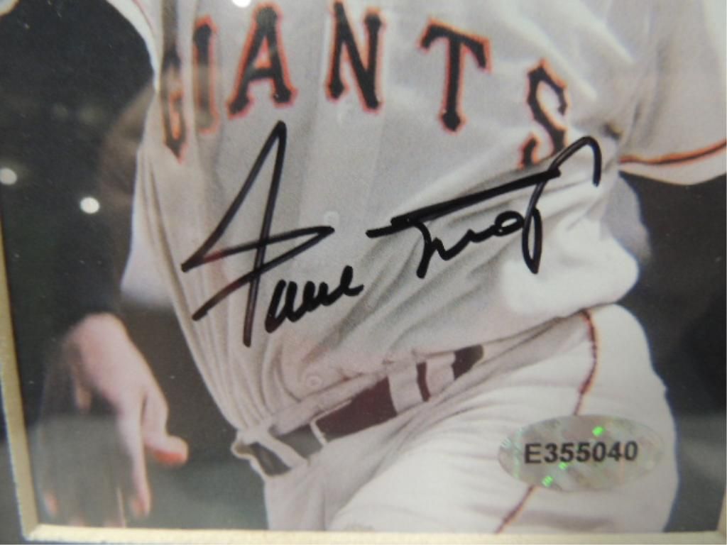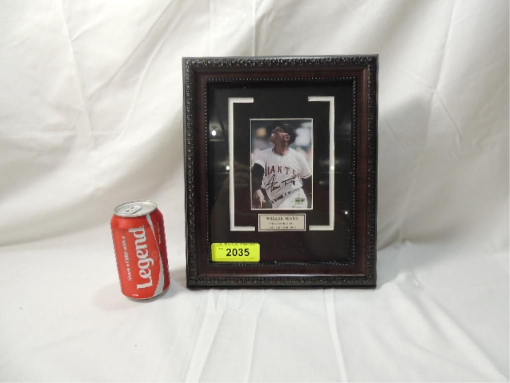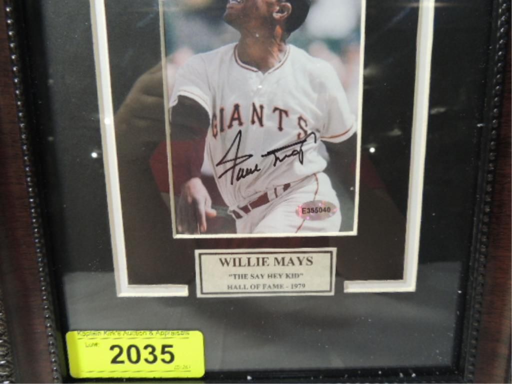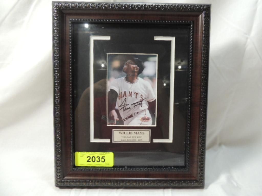 WILLIE MAYS AUTOGRAPHED FRAMED MATTED PHOTO. COA BY SIGNED CERTIFIED MEMORIES. AS SHOWN. SEE PHOTO FOR MORE DETAILS. PLEASE BE ADVISED, AND INFORMED REGARDING SIGNATURES OR AUTOGRAPHS THAT WE SELL AT AUCTION: WE ARE NOT AUTHENTICATORS, AND WE DO NOT AUTHENTICATE, OR VALIDATE ANY AUTOGRAPHS OR SIGNATURES THAT WE OFFER AT AUCTION. SOME AUTOGRAPHS OR SIGNATURES MAY COME WITH AN AUTHENTICATION FROM ANY ONE OF LITERALLY HUNDREDS OF AUTHENTICATORS ACROSS THE COUNTRY, AND AROUND THE WORLD. WE DO NOT ENDORSE ANY AUTHENTICATOR, NOR DO WE GUARANTEE THAT ANY AUTOGRAPH OR SIGNATURE IS AUTHENTIC, OR THAT IT WILL PASS AUTHENTICATION BY ANY AUTHENTICATOR. ALL AUTOGRAPHS OR SIGNATURES ARE SOLD