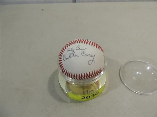 WILSON BASEBALL AUTOGRAPH DUTCHIE CARAY NO COA. HARRY CARAY'S WIFE. SIGNED 2003. AS SHOWN. VIEW PICTURE FOR DETAIL. PLEASE BE ADVISED, AND INFORMED REGARDING SIGNATURES OR AUTOGRAPHS THAT WE SELL AT AUCTION: WE ARE NOT AUTHENTICATORS, AND WE DO NOT AUTHENTICATE, OR VALIDATE ANY AUTOGRAPHS OR SIGNATURES THAT WE OFFER AT AUCTION. SOME AUTOGRAPHS OR SIGNATURES MAY COME WITH AN AUTHENTICATION FROM ANY ONE OF LITERALLY HUNDREDS OF AUTHENTICATORS ACROSS THE COUNTRY, AND AROUND THE WORLD. WE DO NOT ENDORSE ANY AUTHENTICATOR, NOR DO WE GUARANTEE THAT ANY AUTOGRAPH OR SIGNATURE IS AUTHENTIC, OR THAT IT WILL PASS AUTHENTICATION BY ANY AUTHENTICATOR. ALL AUTOGRAPHS OR SIGNATURES ARE SOLD