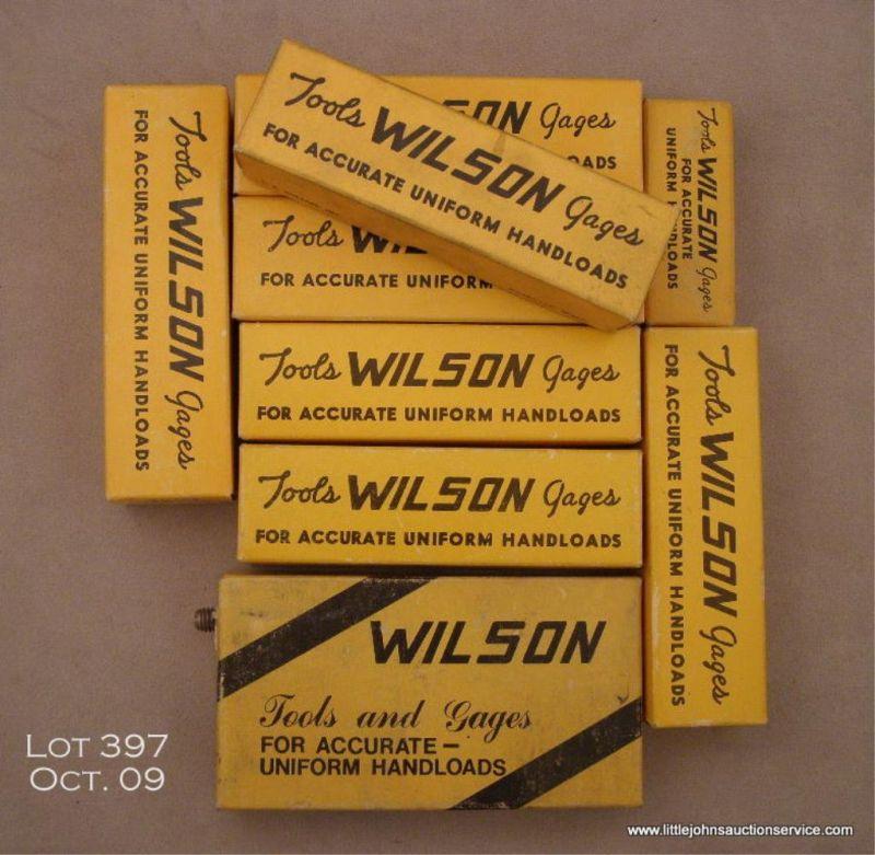 WILSON Chamber type bullet seaters, 8 in all, various calibers including 30-06, 7mm Rem, 257 Roberts, 222 Rem, 220 Swift, 22 PPC and a 220 neck die. Est. $50-$100.