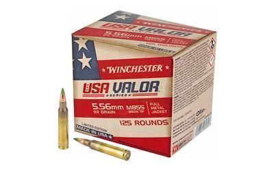 Winchester Ammunition, USA Valor, 556NATO, 62Gr, Full Metal Jacket, Green Tip, 125 Round Box, Limited Edition Series