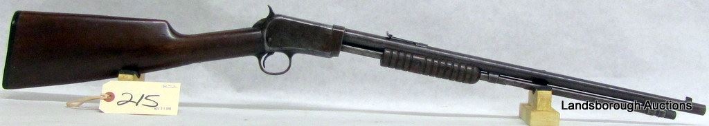 NON-RESTRICTED, PUMP ACTION, 22LR, 20" BARREL, SN 821522. WOOD ORIGINAL WITH DENTS AND SCRATCHES, BLUING IS BROWN, BORE VERY GOOD.