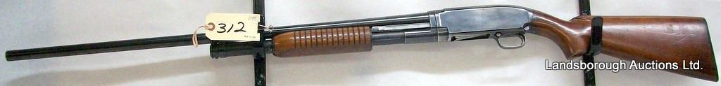 NON-RESTRICTED, PUMP ACTION, 12GA X 2 3/4", 32" BARREL WITH FIXED FULL CHOKE, SN 1027973. WOOD HAS TWO CRACKS BEHIND RECEIVER, BLUING IS GREY, BORE EXCELLENT.