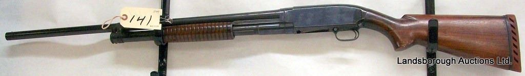 NON-RESTRICTED, PUMP ACTION, 12GA X 2 3/4", 28" BARREL WITH FIXED FULL CHOKE, SN 773597. WOOD HAS TWO SMALL CRACK BEHIND LOWER TANG, BLUING HAS LIGHT RUST ALL OVER, BORE VERY GOOD.