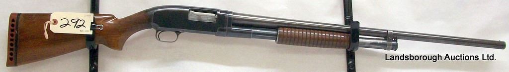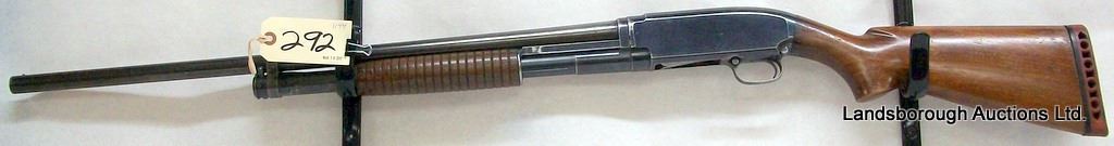 NON-RESTRICTED, PUMP ACTION, 12GA X 2 3/4", 28" BARREL WITH FIXED FULL CHOKE, SN 758439. WOOD HAS NUMEROUS SCRATCHES AND MARKS, BLUING IS GREY AND MARKED, BORE EXCELLENT.