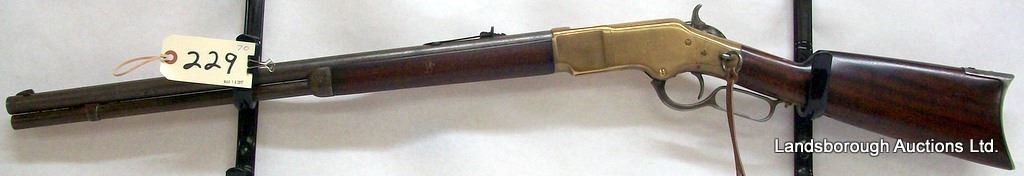 ANTIQUE, LEVER ACTION, 44 HENRY RF, 24" BARREL, SN 100. FOREARM HAS A CRACK AND SCRATCH, BLUING IS GREY, PITTING IN BARREL, BORE HAS DEEP PITTING, RIFLING EVIDENT. MARKINGS ON RECEIVER G.A.S.