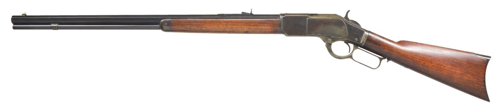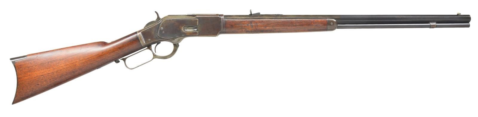 Cal.32 WCF (32-20). S# 538848B. Bbl. 24 octagon w/ original open sights. Full mag. Walnut forearm & straight grip stock w/ crescent steel butt plate. Mfg. 1899. CONDITION: Metal retains fading blue mixing w/ brown patina & spots of surface corrosion showing evidence of touchup finish. Wood has added finish over scratches, dents & marks. Stock fit is slightly proud at top tang. Bore is slightly dark retaining sound rifling w/ a few small spots of pitting. (21-4076/DS). CURIO. $1250-1750.