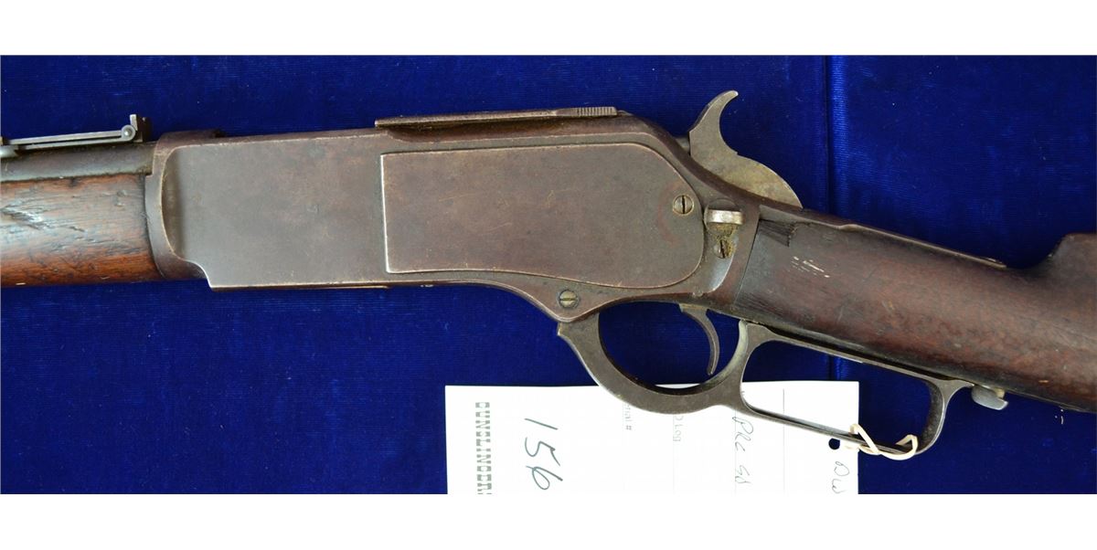 WINCHESTER 1876 MADE IN 1892 45-60CAL 22INCH BARREL LOOKS TO BE TRIMMED DOWN MUSKET HAS LOOP FOR SADDLE RING MECHANICALLY SOUND BORE ROUGH HAS CHIPPS OUT OF BUTT AT WRIST