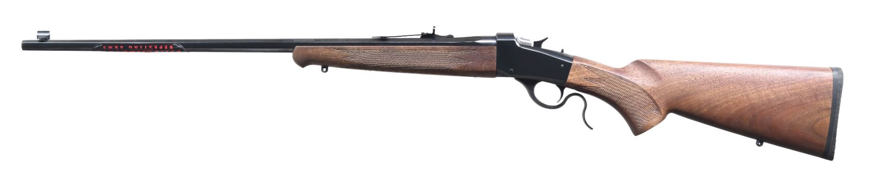 Cal. 17 WSM. S# 00112ZW85D. Bbl. 24" tapered octagon. Bead front sight w/ sporting rear sight. Blue finish. Schnable tipped forearm & pistol gripped stock of satin finished walnut w/ cut checkering, black pad & swivel bases. UNATTACHED ACCESSORIES: foam-lined box containing owner's manual packet & safety lock. CONDITION: as new w/ box. (24-2854/DS). MODERN. $700-1,000/.