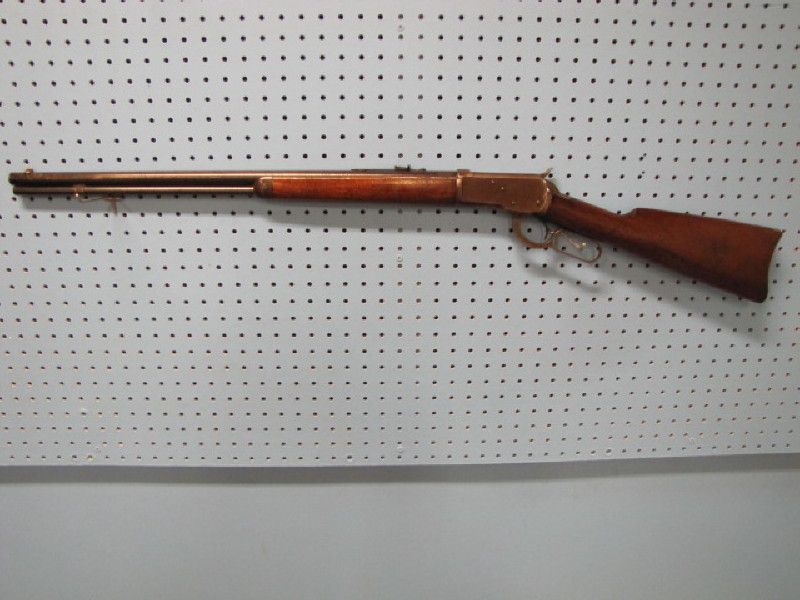 WINCHESTER, 1892, 32-20, RIFLE, FLATTOP STOCK, CRESCENT BUTT, SER # 619XXX; DATE OF MANUFACTURE: 191