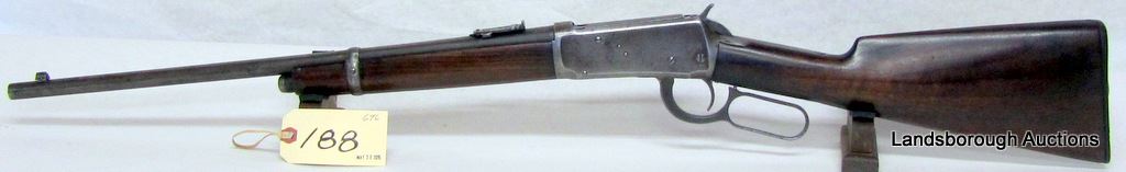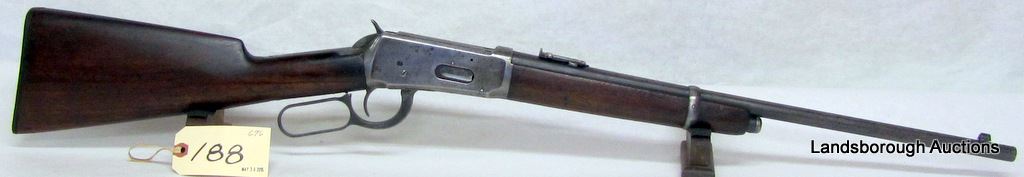 NON-RESTRICTED, LEVER ACTION, 38-55, 20" BARREL, SN 534479. WOOD HAS SMALL CRACK AT BUTT, BLUING IS GREY TURNING BROWN, BORE HAS POOR RIFLING. MFD 1910, LIGHT WEIGHT VERSION.