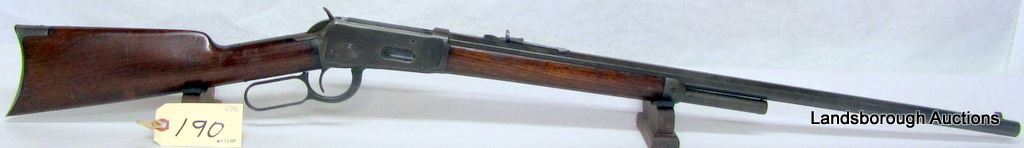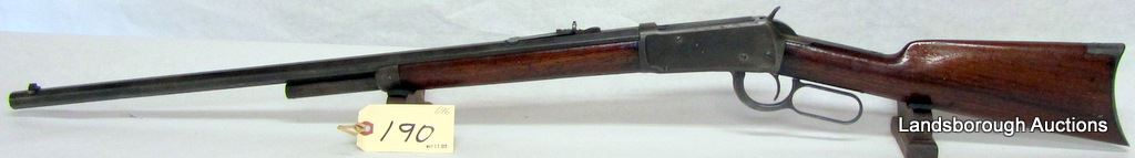 NON-RESTRICTED, LEVER ACTION, 38-55, 26" OCTAGONAL BARREL, SN 25844. WOOD HAS NUMEROUS SMALL DENTS AND MARKS, BLUING IS BROWN, BORE PITTED, RIFLING EVIDENT. MFD 1902, HALF MAG.