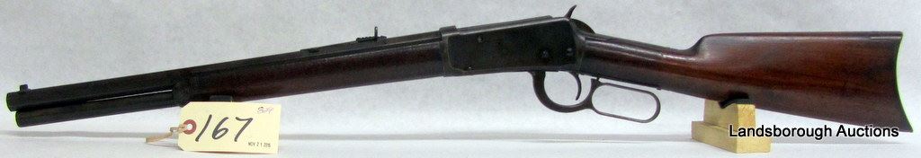 NON-RESTRICTED, LEVER ACTION, 32-40 WIN, 17 1/4" BARREL, SN 19634. WOOD HAS BEEN SANDED DOWN, BLUING IS BROWN, BORE IS STAINED. MFD 1895.