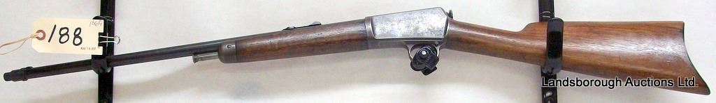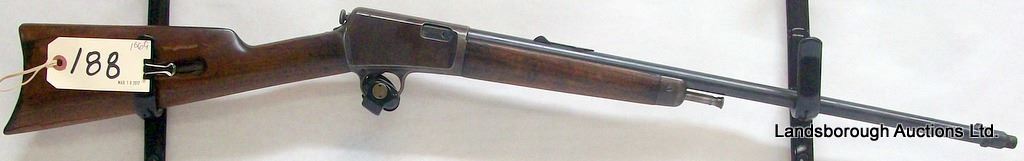NON-RESTRICTED, SEMI AUTO, 22 AUTOMATIC, 20 1/2" BARREL, SN 61964. WOOD HAS TWO LARGE CRACKS IN BUTT, FOREARM HAS NUMEROUS MARKS, BLUING TURNING BROWN, BORE VERY GOOD.