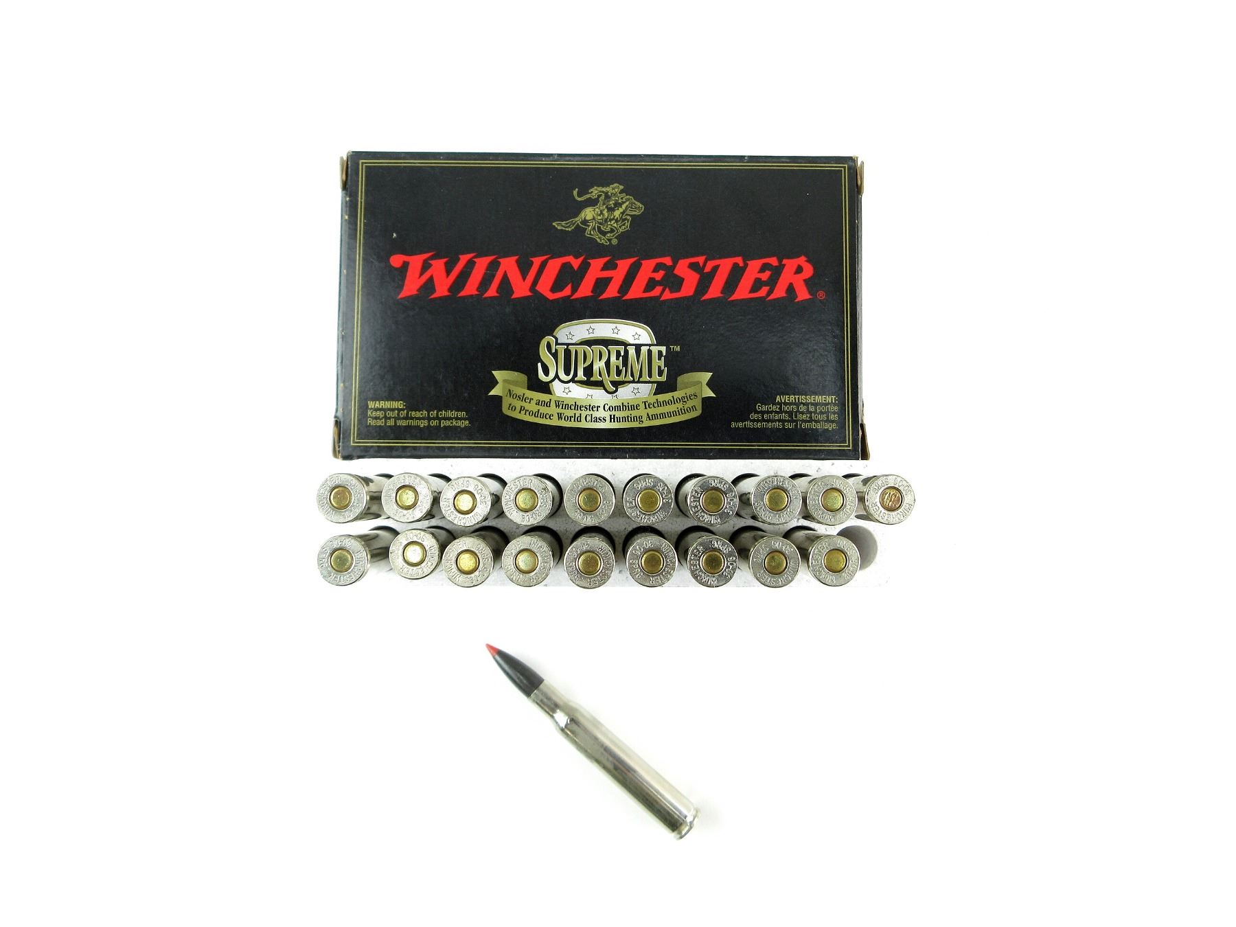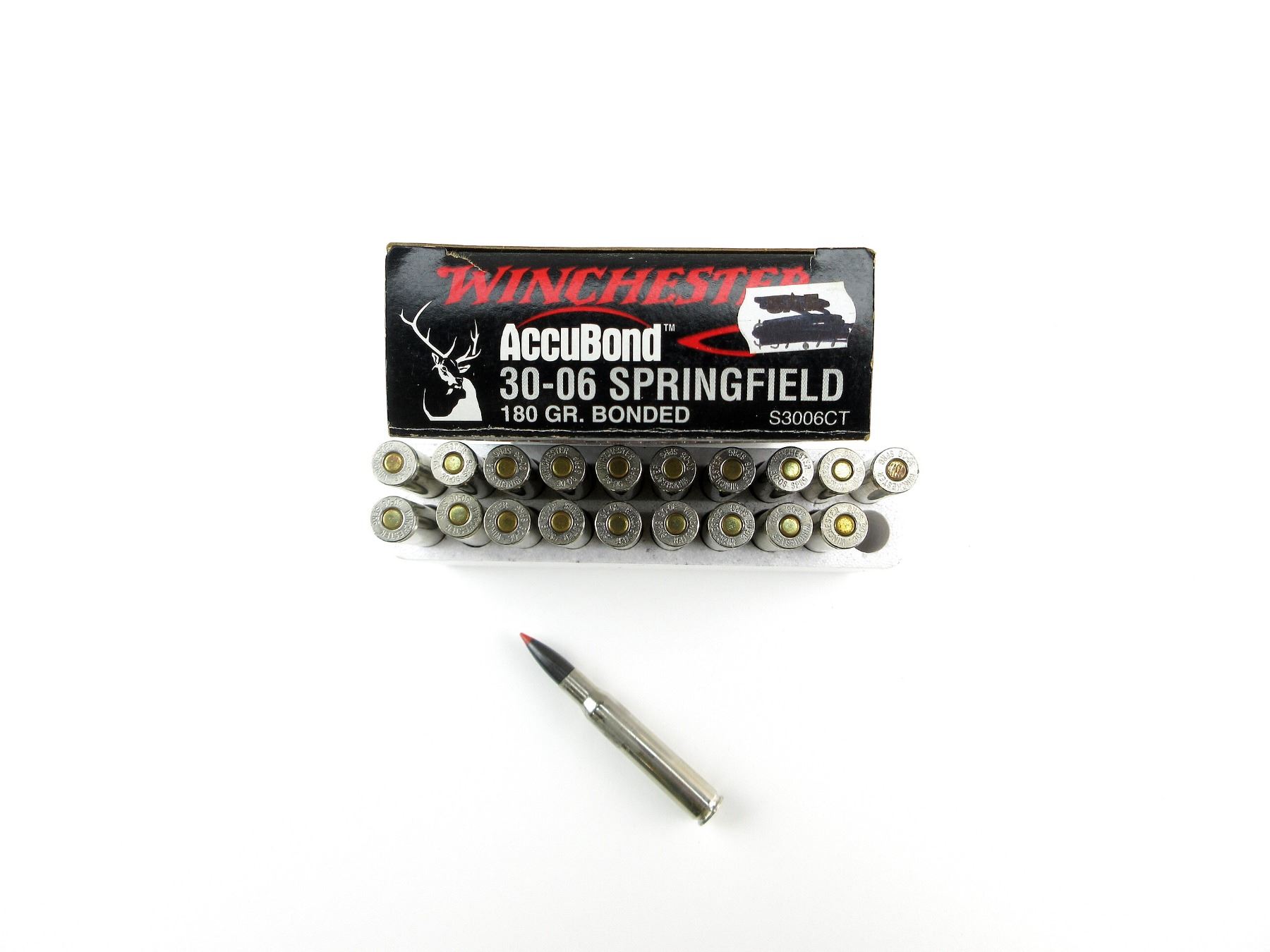 LOT INCLUDES; APPROX. (20) RNDS, 180 GRNS (STATED ON BOX NOT CONFIRMED), BONDED.