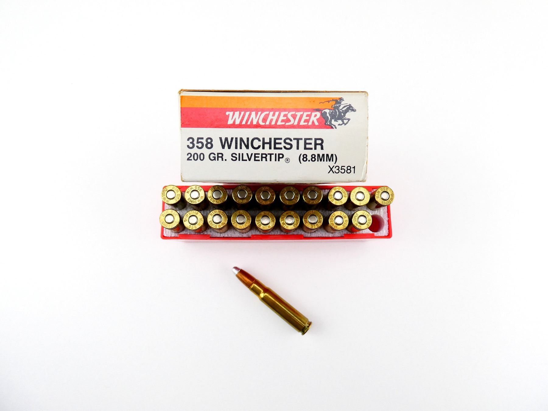 LOT INCLUDES; APPROX. (20) RNDS, 200 GRNS (STATED ON BOX NOT CONFIRMED), SILVERTIP, (8.8MM).