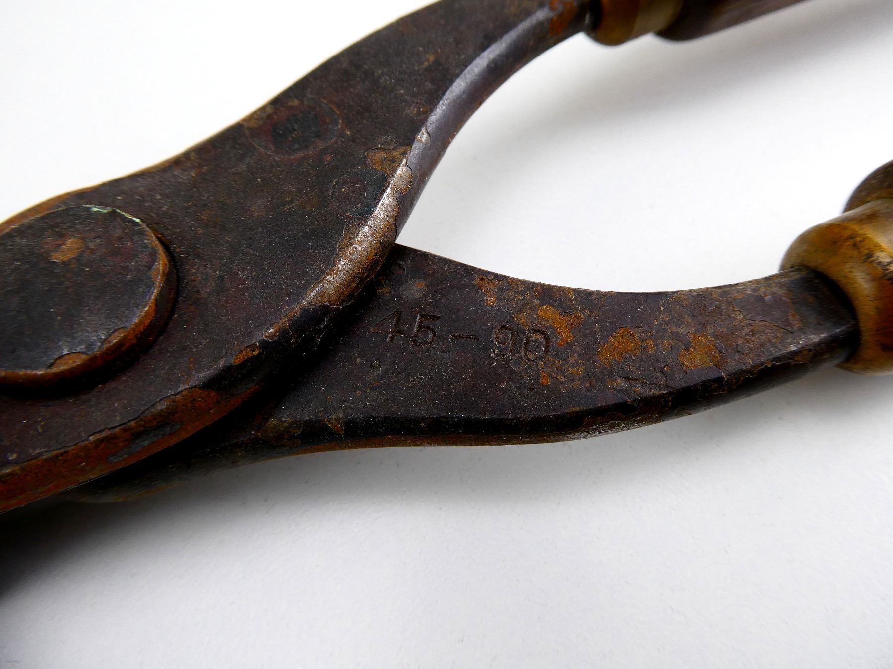 LOT INCLUDES; (1) .45-90 SINGLE-CAVITY BULLET MOLD WITH WOOD HANDLES ATTACHED, MARKED: "45-90" & "WINCHESTER REP ARMS CO.", ETC. SEE PHOTOS.