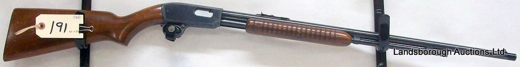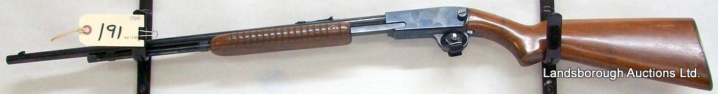 NON-RESTRICTED, PUMP ACTION, 22 CAL, 24" BARREL, SN 87026. WOOD HAS NUMEROUS SCRATCHES, BLUING REFINISHED, BORE EXCELLENT.