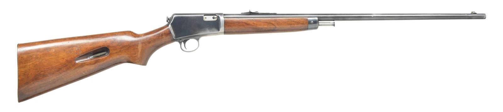 Cal. 22 LR. S# 97799A (1951). Bbl. 23" w/ sporting sights. Walnut stock set. CONDITION: good plus blue w/ areas of finish loss & handling marks. Lightly sanded & refinished wood has handling marks & dents. Very good bore. (22-2804/MD). CURIO. $400-600.