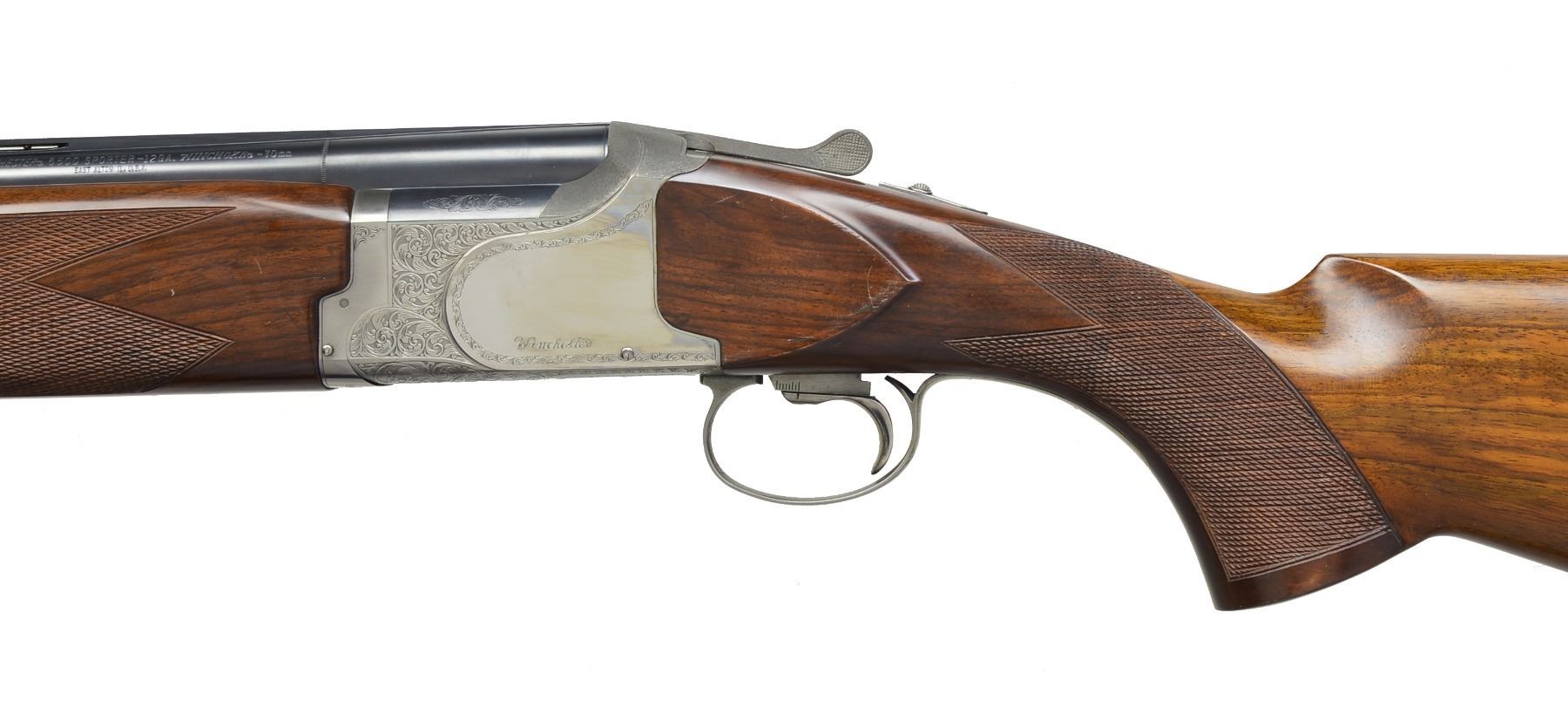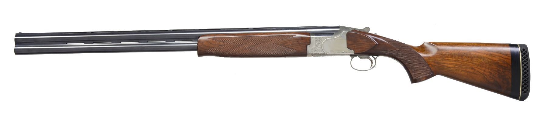 SHOTGUNS. Cal. 12 Ga., 70mm (2 3/4"). S# K548688E. The 6500 was the European counterpart to the 101 Sporting Clays shotgun. Bbls. 28" VR w/ ported side ribs & Invector chokes; Extra Full, Full, Imp. Mod., Mod., Imp. Cyl. & Cyl. tubes included. Stainless finished boxlock action w/ generous foliate scroll ornamentation. SST. AE. Schnabel tipped forearm & uncapped pistol grip stock of checkered walnut w/ semi gloss finish. LOP: 13 1/2" over an aftermarket white line pad w/ white line toe & 3/4" of black spacers. DAC: 1 5/8". DAH: 2 1/8". UNATTACHED ACCESSORIES: 4 spare choke tubes & wrench. CONDITION: 98% bbl. & action finish. Forearm has good original finish showing sm. marks. Butt section of stock has restored finish. Bores are clean & bright. (20-1178/DS). MODERN. $1,200-1,800.