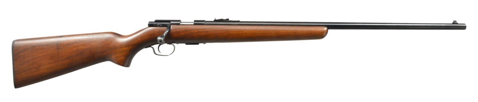 Cal. 22 S, L, LR. NSN. Bbl. 25". Dovetail bead front sight. Adj. dovetail rear sight. Uncheckered pistol grip stock w/ Winchester hard rubber buttplate. MAGS: 1 Winchester marked 5 rd. CONDITION: bbl. has original blue w/ minor muzzle wear. Receiver is grooved & retains original blue. Bolt handle original blue lightly thinning & fading w/ brown patina. Trigger guard has original blue, but is slightly thinning. Bore is good. (20-1726/BT). CURIO. $300-500.