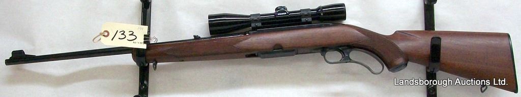 NON-RESTRICTED, LEVER ACTION, 308 WIN, 22" BARREL, SN 16343. WOOD HAS A SMALL CHIP IN TOE, BLUING HAS SOME SMALL MARKS, BORE EXCELLENT. COMES WITH WEAVER 4 X 38 SCOPE.