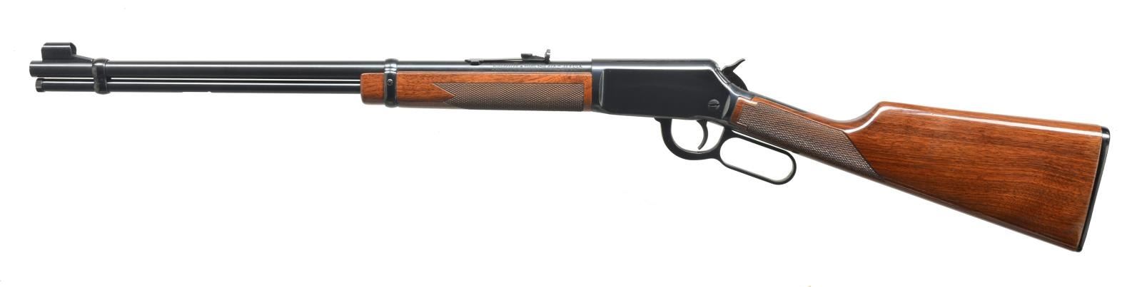 Cal. 22 S, L, LR. S# F400176. Bbl. 20" w/ hooded ramp bead front sight & sporting rear sight. Full length tubular mag. Blue finished action grooved for tip off scope mt. Carbine forearm & straight grip stock w/ plastic buttplate, gloss finish & cut checkering. CONDITION: 98% metal finish showing sm. scratches. Original wood finish shows scattered scratches & marks. Bright near excellent bore. (20-3496/DS). MODERN. $500-700.
