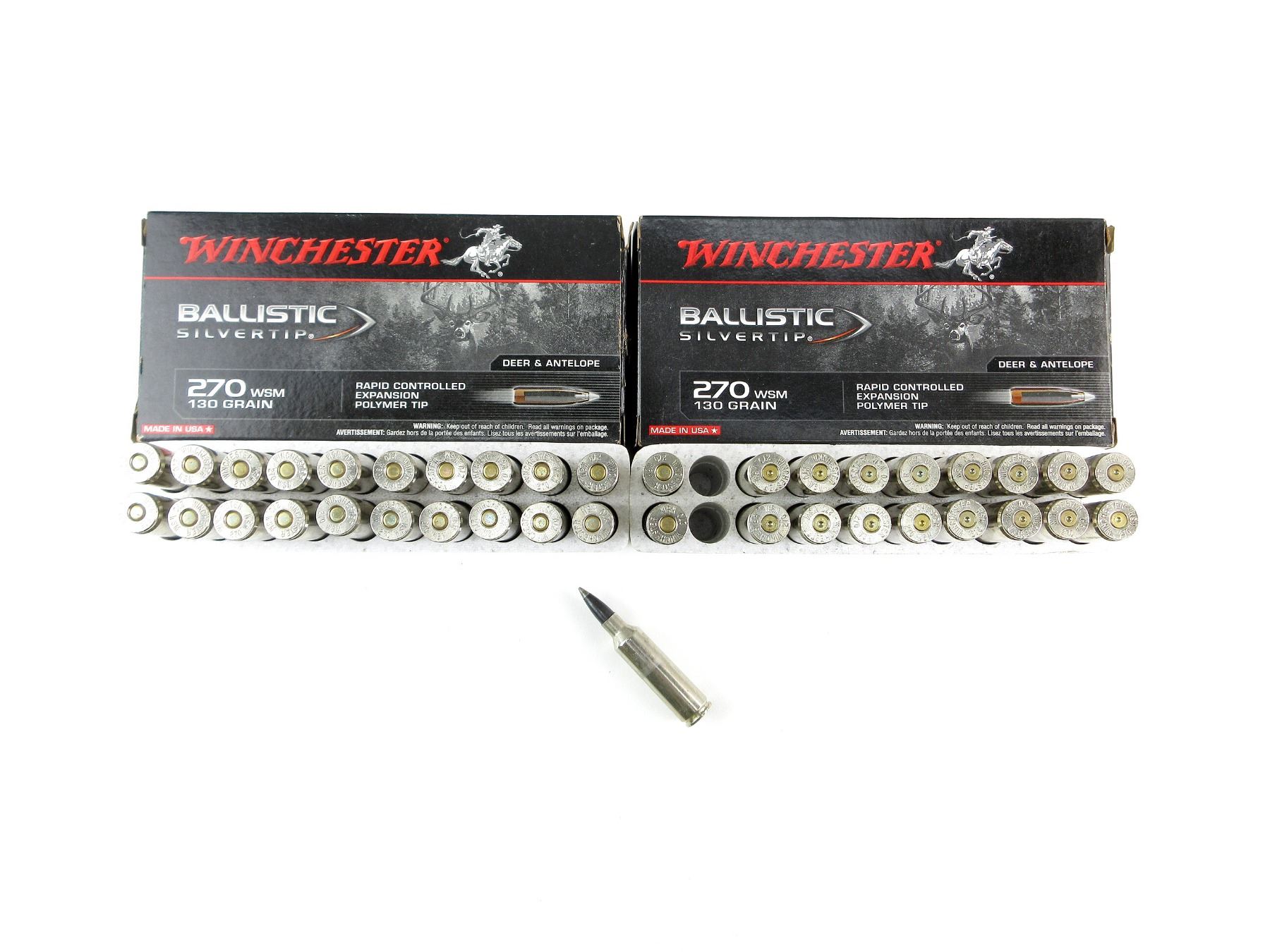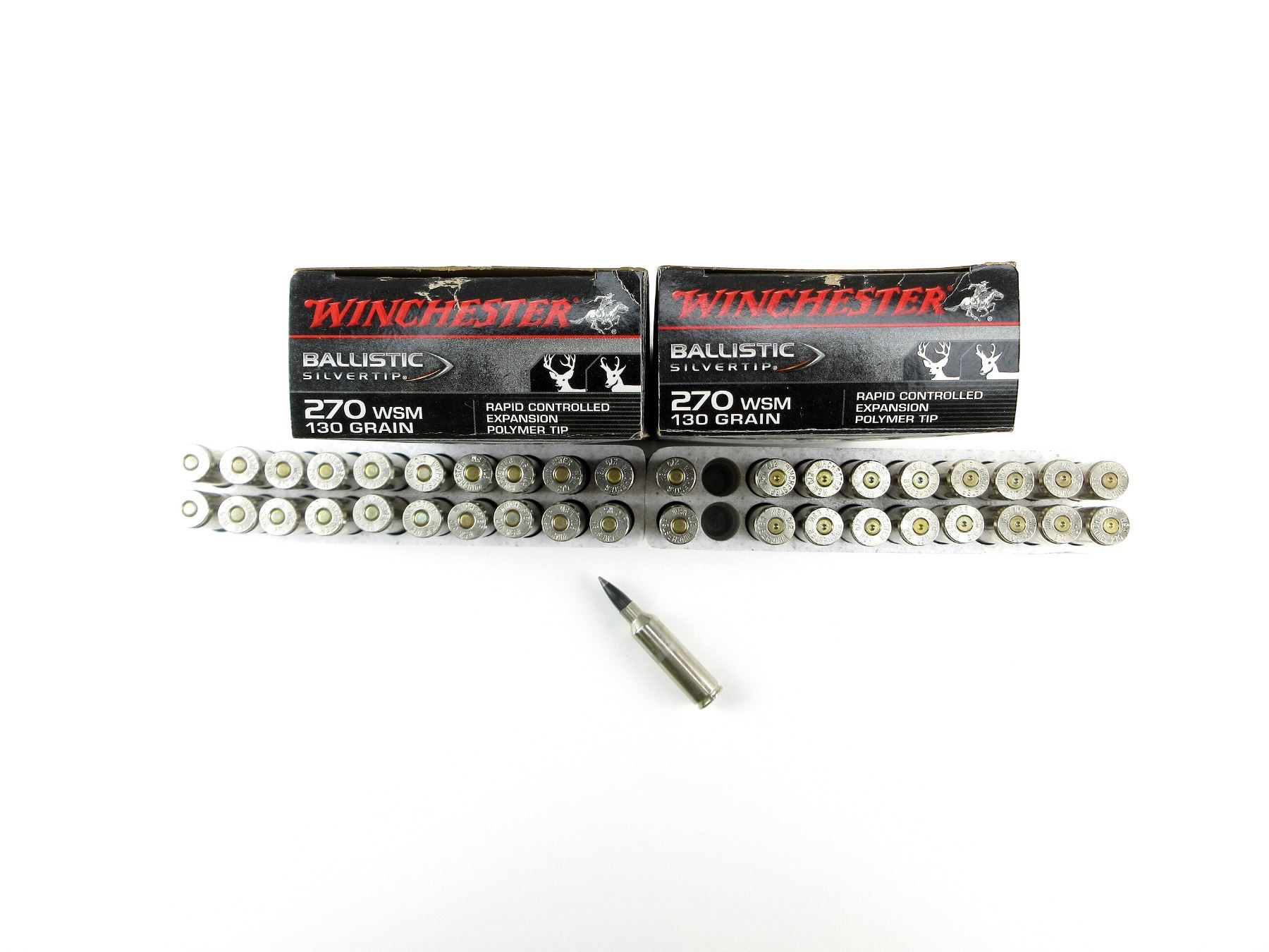 WINCHESTER BALLISTIC SILVERTIP .270 WSM AMMO AND NON-PRIMED NICKEL CASES LOT