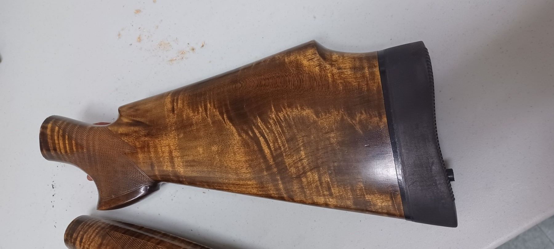 WINCHESTER MODEL 12 CUSTOM TRAP STOCK AND MATCHING FOREND WITH KICKEASE RECOIL PAD MINT