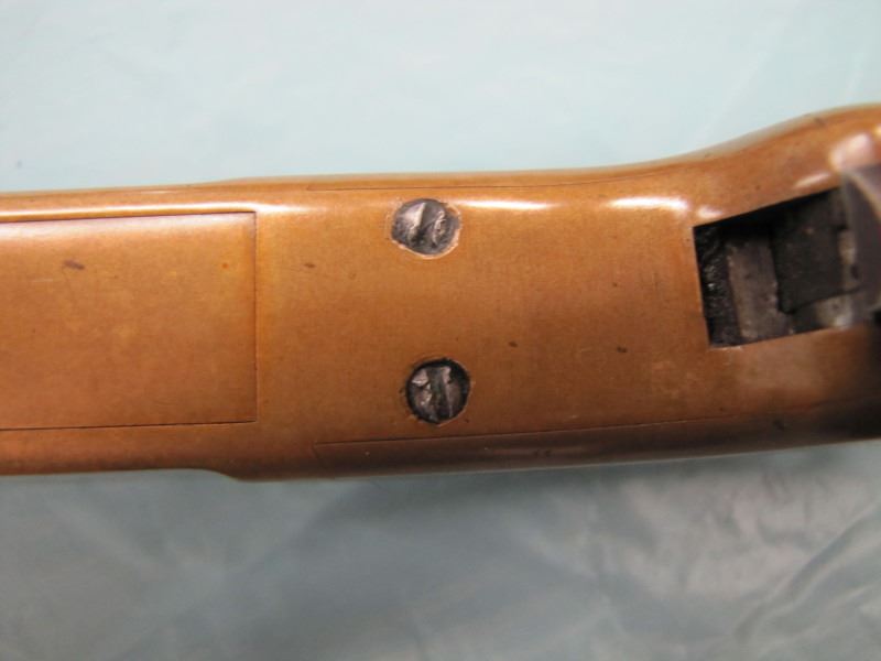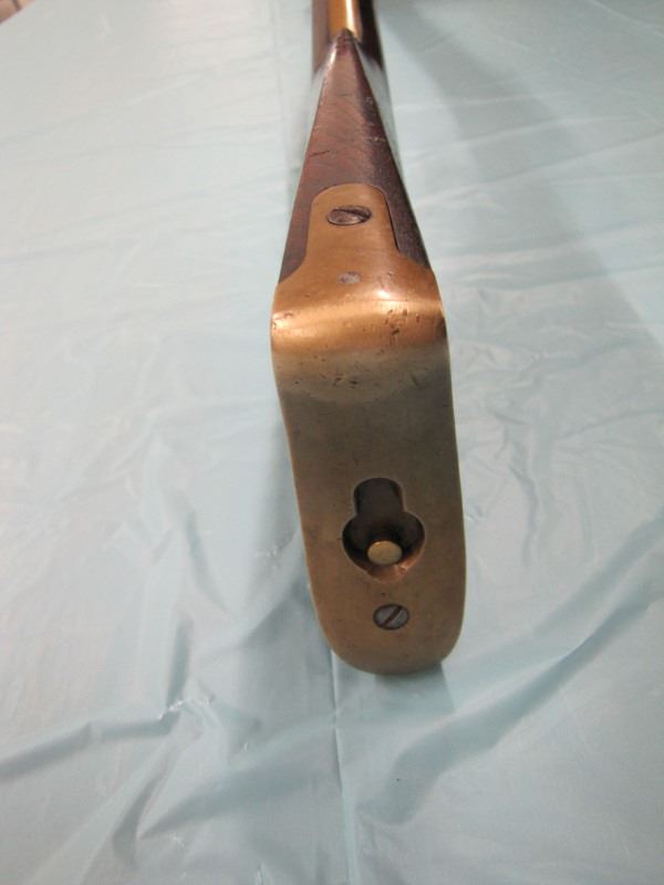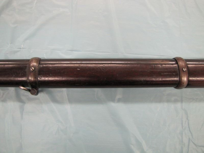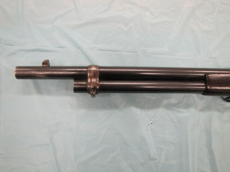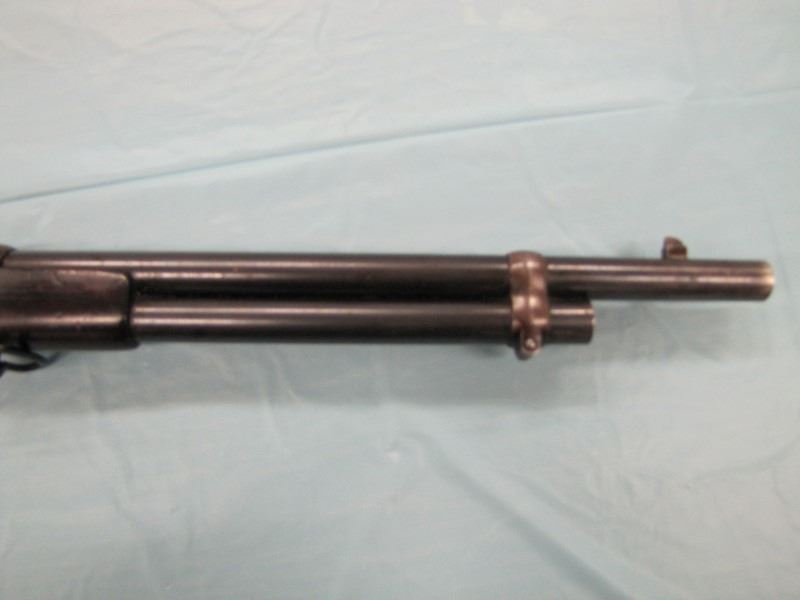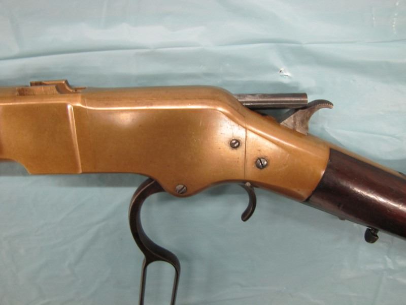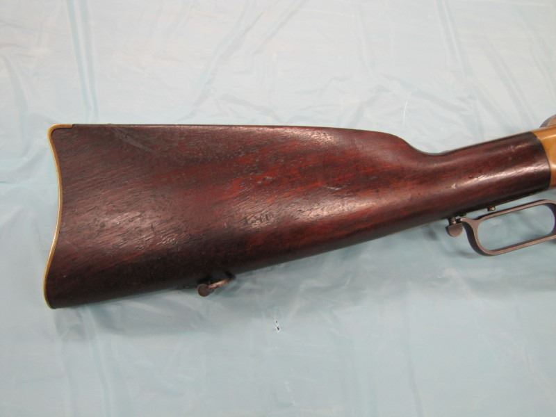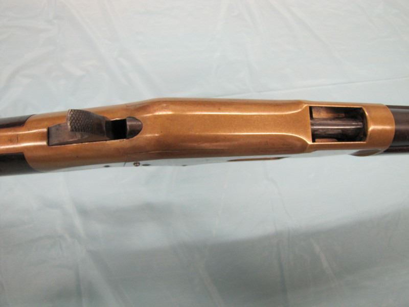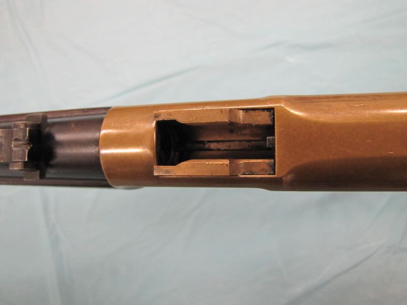 WINCHESTER MODEL 1866 MUSKET. .44 Caliber Rim fire. In 1866, New Haven Arms Company changed its name to Winchester Repeating Arms Company. The first firearm to be produced under the Winchester name was the Model 1866. Made in 1870 ( Serial # below 35XXX ). This antique firearm is still in beautiful condition. Its brass receiver and butt plate are in new condition. A lot of the original blue still remains on the barrel, mag and loading gate. It has bright rifling - almost never seen on guns of this age. A few screw slots are somewhat burred, proving only that it was punctually cleaned after firing ( the old ammo ruined rifling if briefly neglected.) Fore end and butt stock show only minor bruises, with almost all original varnish intact. According to The Blue Book of Gun Vales, this firearm is appraised at above $35,000 U.S. dollars because it is not in " above average " condition, but in " far above average " condition. This firearm can enter the USA without hindrance because U.S. Customs has assigned it genuine antique status.