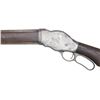 Cal. 10 GA. S# 64110. Bbl. 32". Model 1887 lever action shotgun mfg. by Winchester during the last of production in 1898. Top of the bbl. is marked with Winchester's mfg. information, with "10/ CYL" marked at the breech. Left side of the receiver is marked with the "WRA" monogram with Winchester's mfg. and patent information marked on the lower receiver tang. Plain wood rnd. knob buttstock, with smooth wood 2-piece forend. Brass bead front sight. CONDITION: metal components retain traces of their original factory blue finish, with the balance exhibiting a gray patina, with varying degrees of oxidation and pitting present overall. Dark pitted bore. Action functions appropriately when cycled by hand. Wood furniture shows scattered marks and impressions from handling and storage, with the right forend panel exhibiting an area of gouging. (01-25989/MLW). ANTIQUE. $300-500.