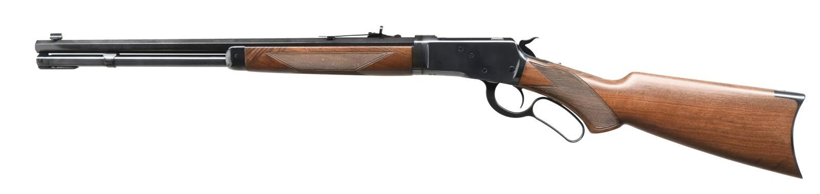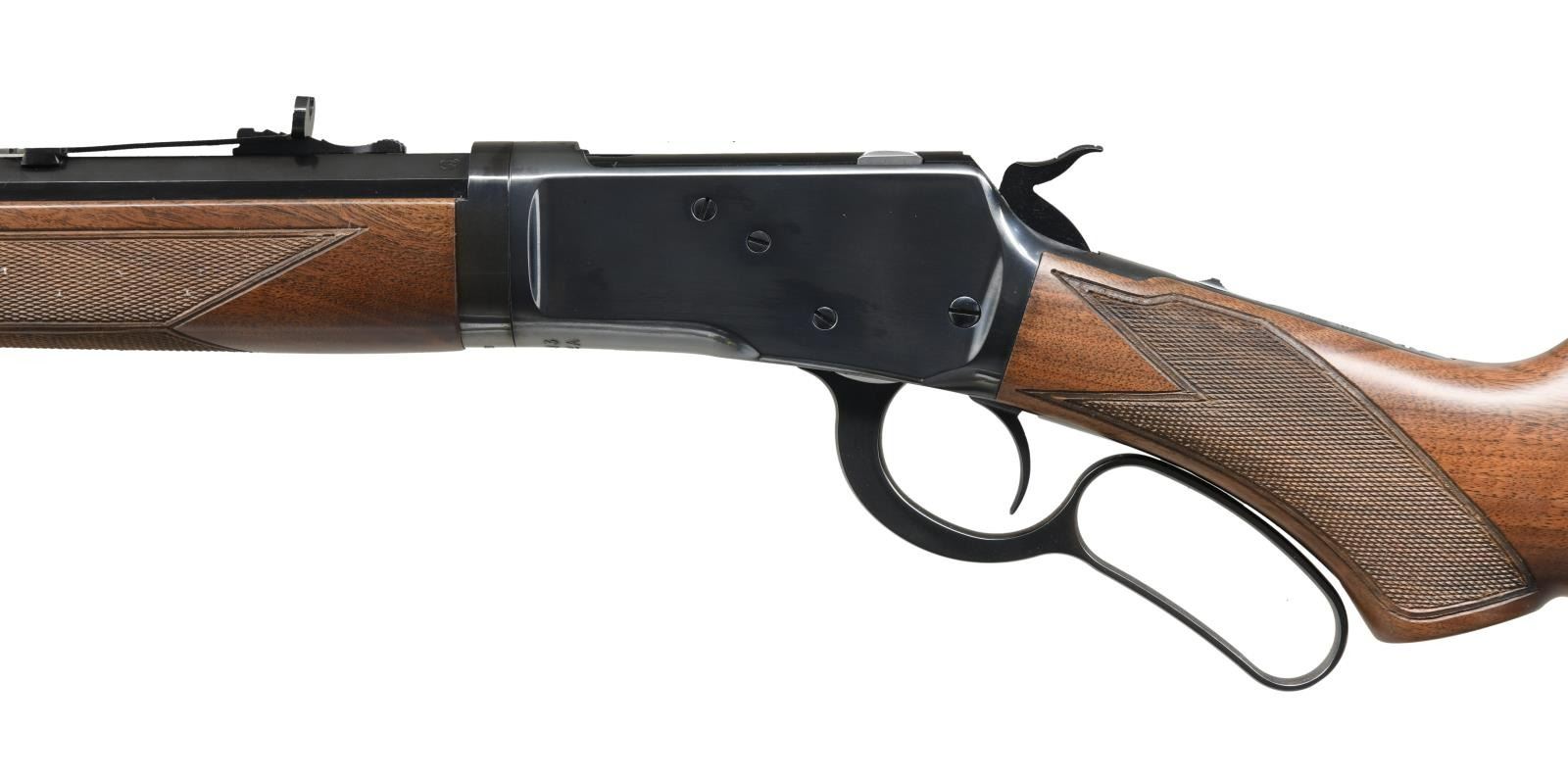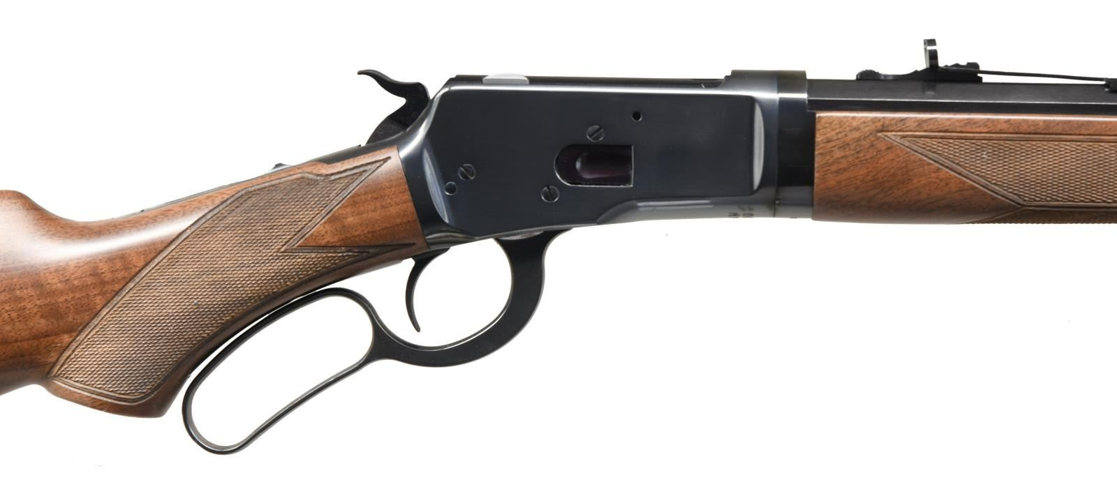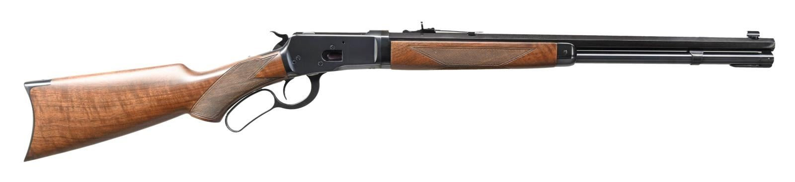 TAKEDOWN LEVER ACTION RIFLE WITH BOX. Cal. 44-40. S# 00393MP92A. Bbl 20". Winchester Model 1892 Limited Series Deluxe Takedown lever action rifle manufactured by Miroku and imported by BACO Inc., of Morgan, UT. Left side of barrel is marked with the Winchester trademark logo, followed by the model and caliber designations, with BACO's importer information across the right. Metal components are blued, with the buttstock and forend being comprised of checkered wood. Brass beaded blade front sight with dovetailed U-notch rear sight. UNATTACHED ACCESSORIES: matching factory box. Box sleeve is not present. CONDITION: excellent, with metal components retaining virtually all of their original factory blue finish, exhibiting some minor superficial marks from handling and storage overall. Mirror bore, exhibiting well defined rifling throughout. Wood furniture is excellent overall. Box shows some mild exterior wear, but is otherwise very good. (23-1795/MLW). MODERN. $800-1,100.